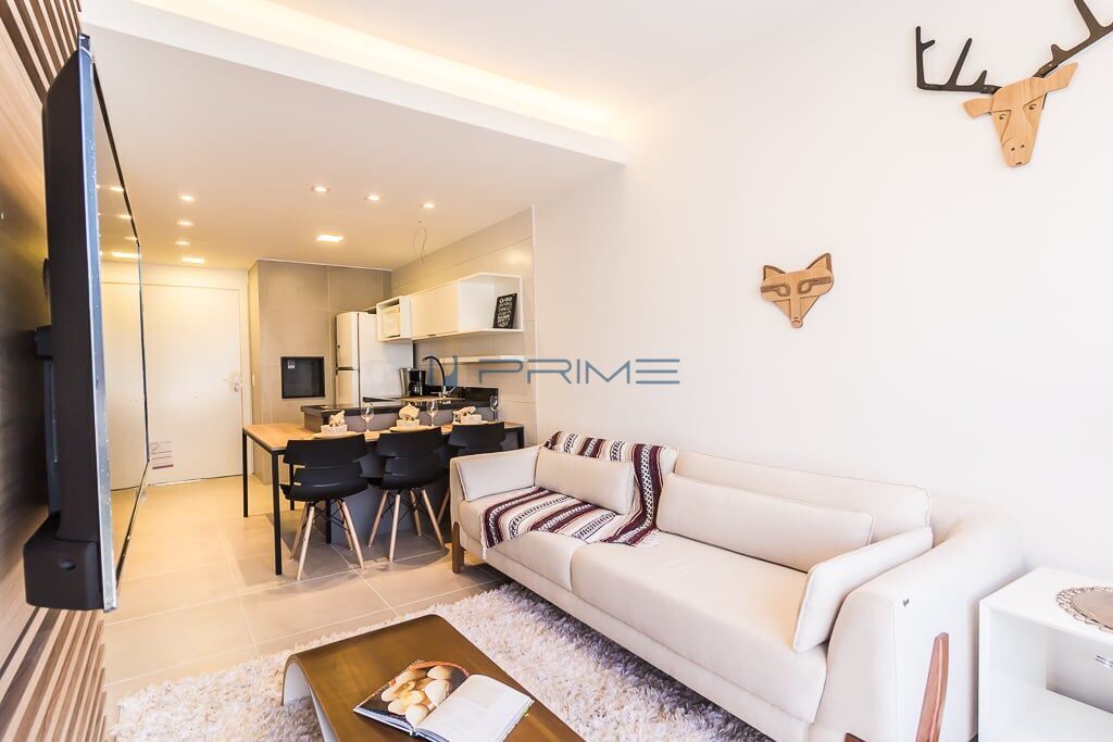 Novo, com 58,62 m² distribuídos em um dormitório, living, cozinha e banho social;