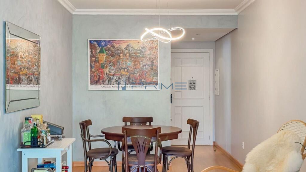 A cozinha sob medida, que permanece no imóvel, alia praticidade e bom gosto. Conta ainda com segundo banheiro completo, ótima posição solar e vaga de garagem coberta e escriturada.